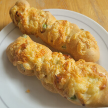 【パン】 オープンクラス 4,5月の今月のパン [枝豆とベーコンのチーズバゲット][難易度=中][時間=3時間][3,800円] 枝豆とベーコンを練り込んだバゲットにチーズを乗せて焼きました。 |