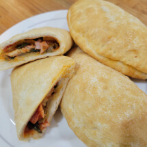 | 【パン】 オープンクラス 5,6月の今月のパン [カルツォーネ][難易度=中][時間=3時間][3,800円] イタリアの包み焼きピザ。中には濃厚なトマトソースで和えたほうれん草やロースハムを入れました。温めて美味しさアップ! |