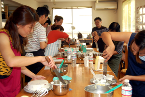 2000年にオープンしたパン・ケーキ教室は、メンバー登録している生徒さんだけで1,000人を超えました。毎月定期的に開講しているパンやケーキのクラス以外にも、親子パン教室や子どもたちの教室、また企業でのイベント企画や修学旅行などにも利用していただいています。人数が揃えば、予算に合わせた企画をお作りすることも可能です。