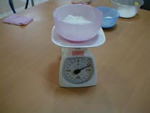| 2. | 計量、混ぜ、こね | 小麦粉・生種・砂糖・塩・水を計量し、ボ−ルに入れてかき混ぜ、こねます。![]() ![]() |