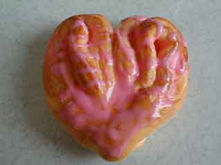 ハート型に成形した可愛いパンです。苺チョコをかけてピンク色にした甘〜いパンです。 6-14 スイートロール ![]()