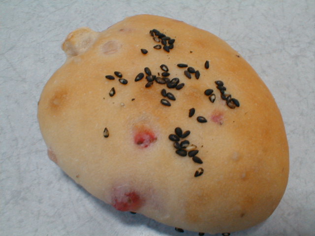 このパンはホクホクで女の子好みの味でした。6-25 苺の天然酵母パン ![]()