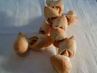 子供が喜び形に成形したパンです。アイデア次第で楽しくなりそうです。パン教室の皆が作ってくれました。 6-18 ヘーゼルナッツパン ![]()