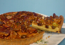 | 【パティシエケーキ】オープンクラス[キャラメルナッツタルト]中級11/8(土)AM,PM(6ヶ月契約者\6,000,オープンクラス\6,825) パーツシュクレにラムレーズン入りのアーモンドクリームを流しオーブンで焼き、さらにピーカンナッツ、クルミ、アーモンド、ピスタチオにキャラメルをからめたものを乗せて焼き上げます。 サクサクのタルトとラムレーズンの香り、ナッツの香ばしさとキャラメルのコクが一体となっています。 |